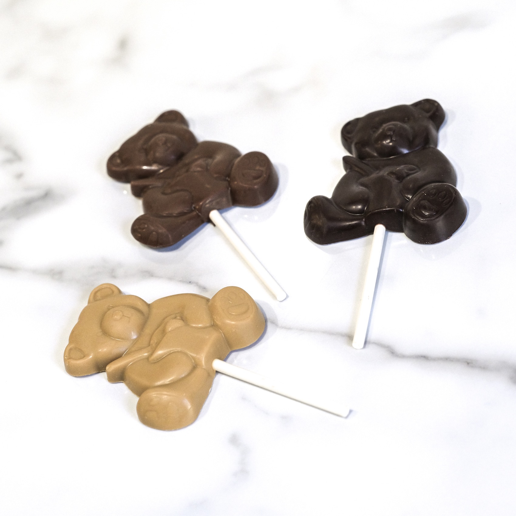 Les sucettes en chocolat existent en Chocolat Dulcey, Chocolat au Lait ou Chocolat Noir.